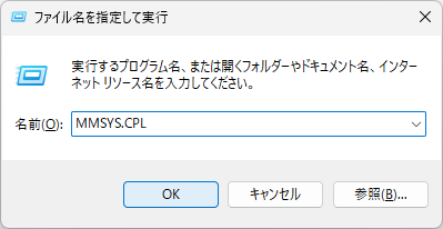 1. 「ファイル名を指定して実行」または「スタートメニュー(検索)」から「MMSYS.CPL」を実行します。
